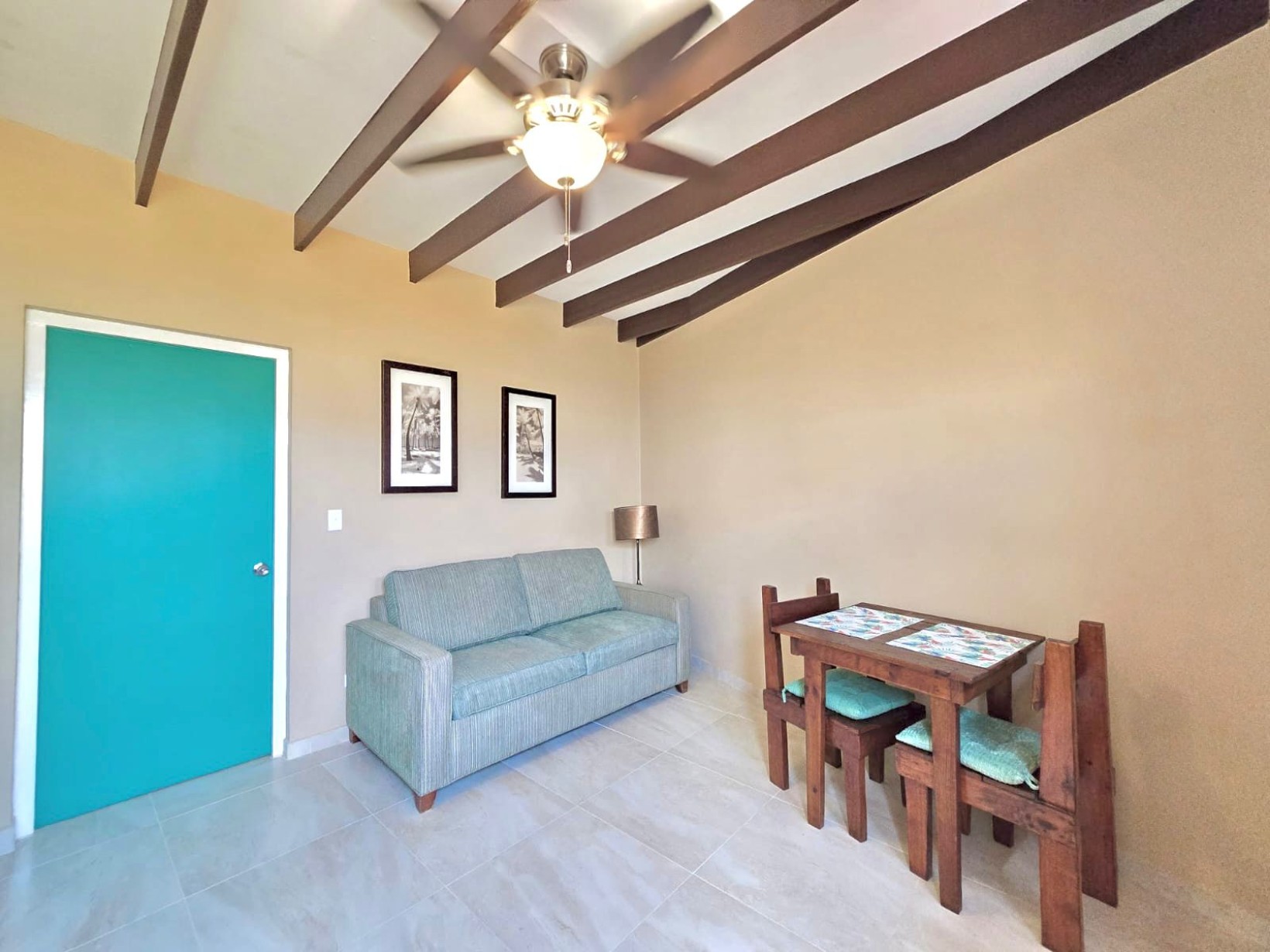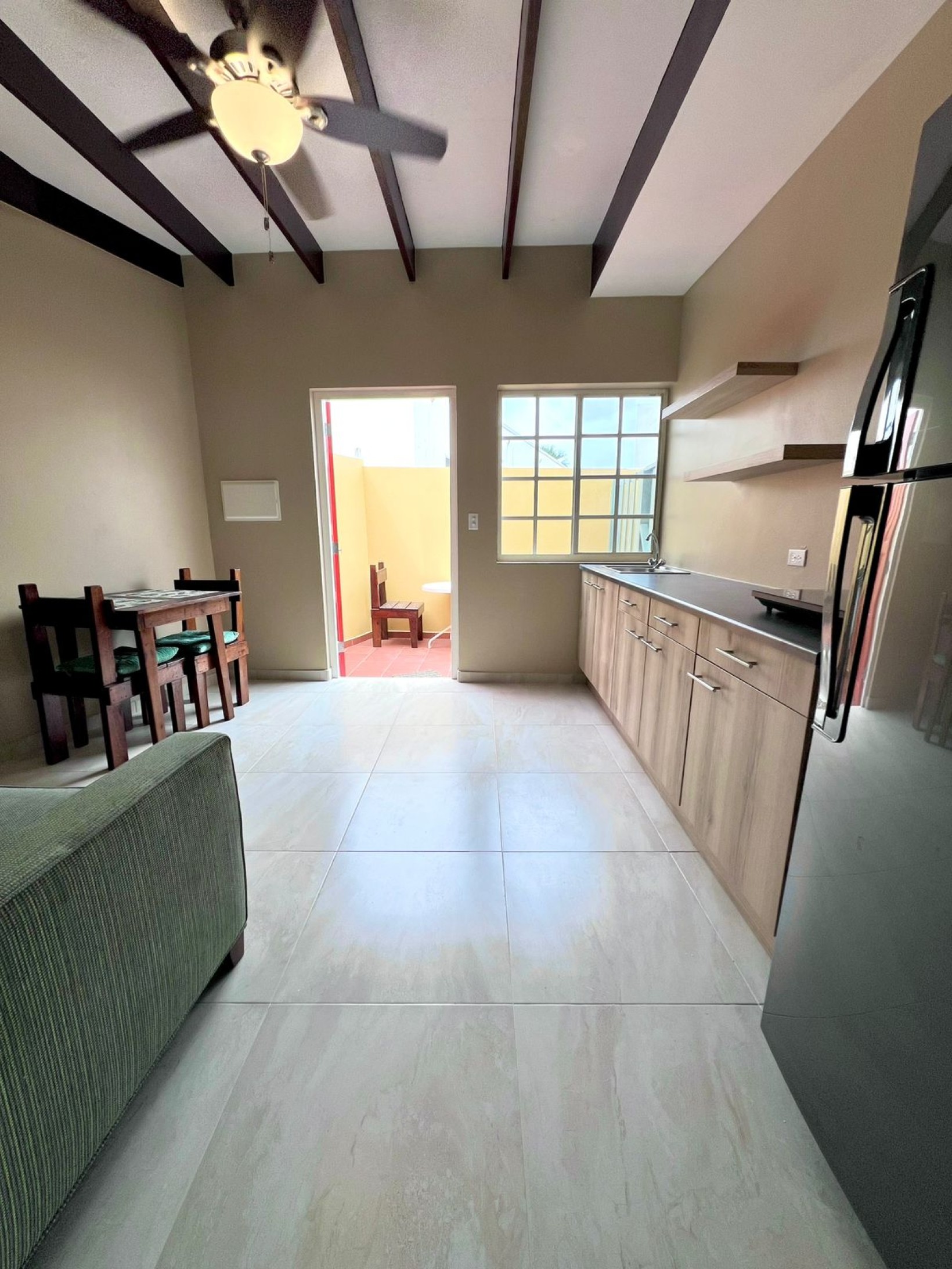 Discover modern island living in this freshly constructed 1-bedroom, 1-bathroom semi-furnished apartment located within the peaceful and sought-after San Barbola Residence. With its own private entrance and a charming private porch, this unit offers both comfort and tranquility.